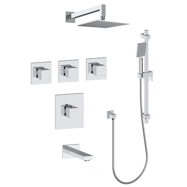 Three volume control trims allow you to adjust the flow of water in each water fixture