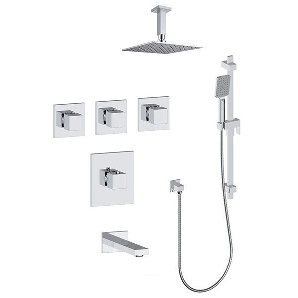 Three volume control trims allow you to adjust the flow of water in each water fixture